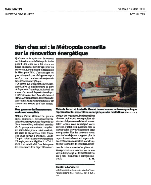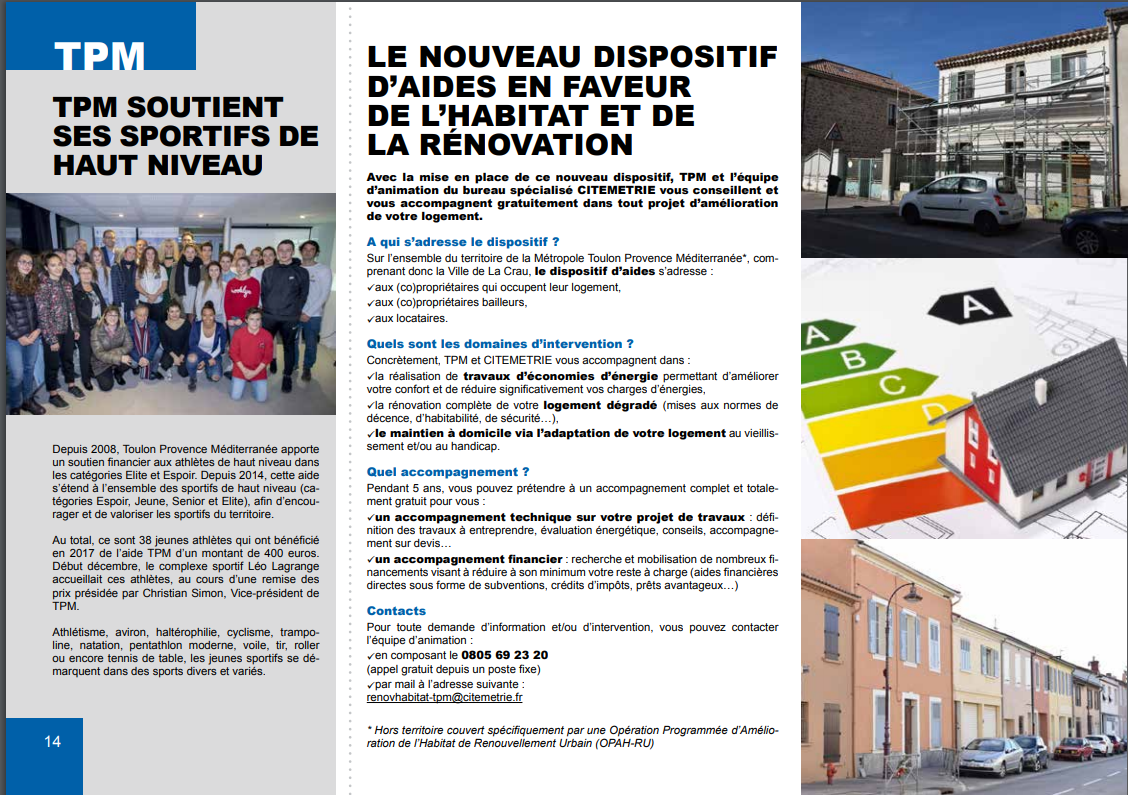 La Métropole TPM a mis en place un nouveau service pour améliorer votre habitat / février 2018